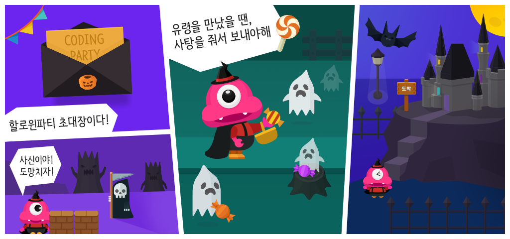 할로윈 파티장까지 가기 위한 여정을 시작해 보아요.