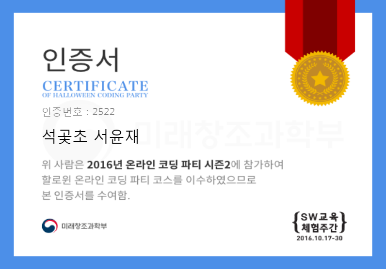할로윈 미션 완료 인증서를 등록하기 위해서는