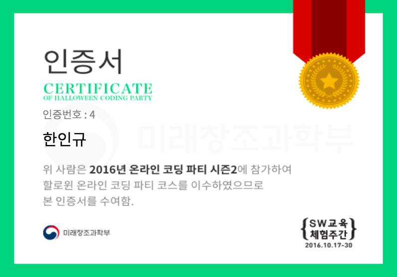 할로윈 미션 완료 인증서를 등록하기 위해서는
