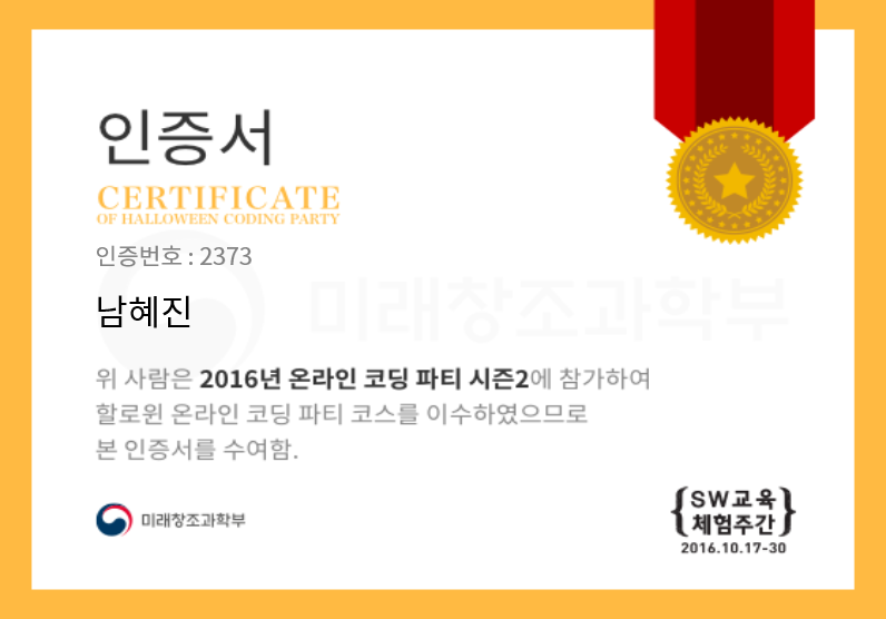 할로윈 미션 완료 인증서를 등록하기 위해서는