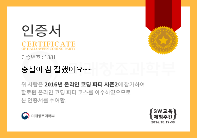 할로윈 미션 완료 인증서를 등록하기 위해서는