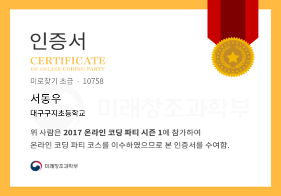 온라인 코딩 파티 참여하고 미션에 성공해 인증서를 받아보세요.