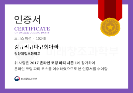 온라인 코딩 파티 참여하고 미션에 성공해 인증서를 받아보세요.