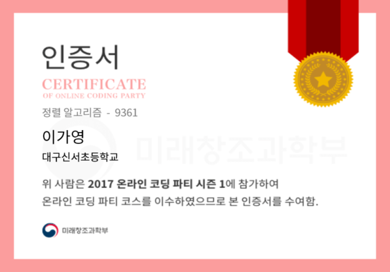온라인 코딩 파티 참여하고 미션에 성공해 인증서를 받아보세요.