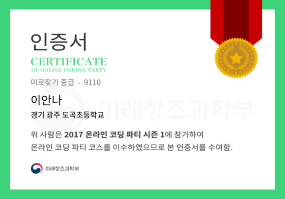 온라인 코딩 파티 참여하고 미션에 성공해 인증서를 받아보세요.