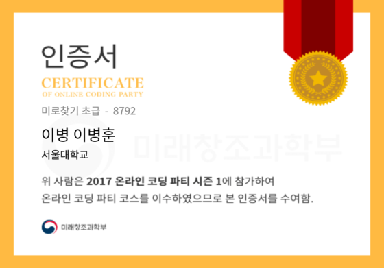 온라인 코딩 파티 참여하고 미션에 성공해 인증서를 받아보세요.