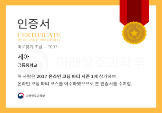 온라인 코딩 파티 참여하고 미션에 성공해 인증서를 받아보세요.