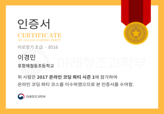 온라인 코딩 파티 참여하고 미션에 성공해 인증서를 받아보세요.