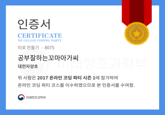 온라인 코딩 파티 참여하고 미션에 성공해 인증서를 받아보세요.