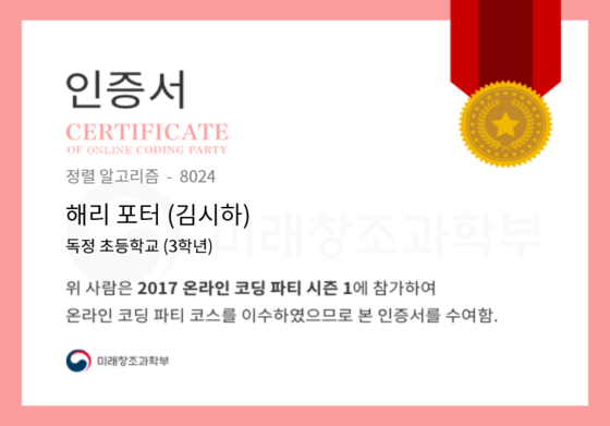 온라인 코딩 파티 참여하고 미션에 성공해 인증서를 받아보세요.