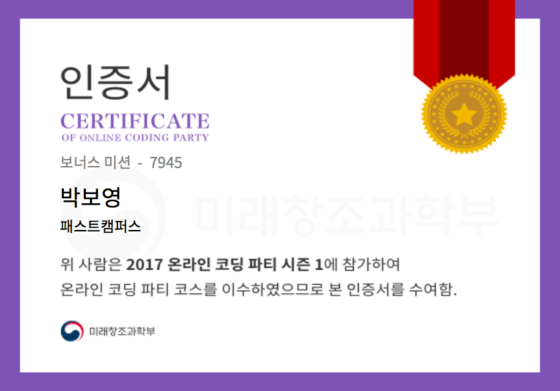 온라인 코딩 파티 참여하고 미션에 성공해 인증서를 받아보세요.