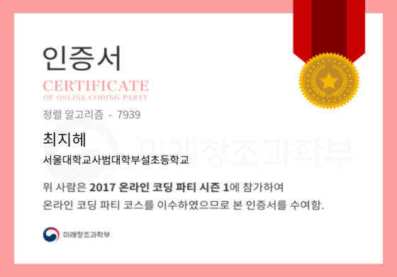 온라인 코딩 파티 참여하고 미션에 성공해 인증서를 받아보세요.