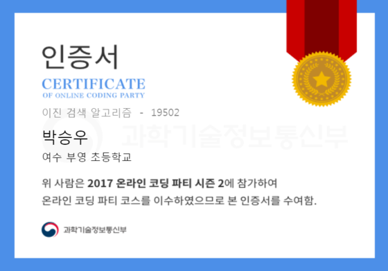 온라인 코딩 파티 참여하고 미션에 성공해 인증서를 받아보세요. 미션을 완료하면서 받은 인증서를 ‘인증서 자랑하기’에 등록해 주세요.