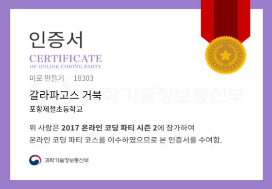 온라인 코딩 파티 참여하고 미션에 성공해 인증서를 받아보세요. 미션을 완료하면서 받은 인증서를 ‘인증서 자랑하기’에 등록해 주세요.