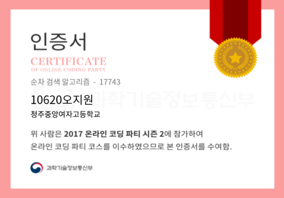 온라인 코딩 파티 참여하고 미션에 성공해 인증서를 받아보세요. 미션을 완료하면서 받은 인증서를 ‘인증서 자랑하기’에 등록해 주세요.