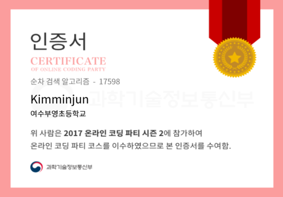 온라인 코딩 파티 참여하고 미션에 성공해 인증서를 받아보세요. 미션을 완료하면서 받은 인증서를 ‘인증서 자랑하기’에 등록해 주세요.