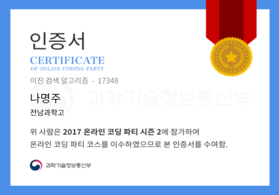온라인 코딩 파티 참여하고 미션에 성공해 인증서를 받아보세요. 미션을 완료하면서 받은 인증서를 ‘인증서 자랑하기’에 등록해 주세요.