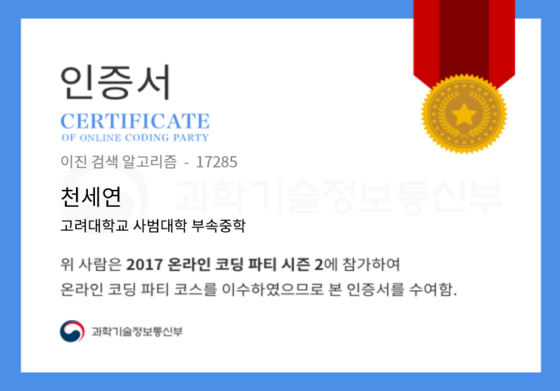 온라인 코딩 파티 참여하고 미션에 성공해 인증서를 받아보세요. 미션을 완료하면서 받은 인증서를 ‘인증서 자랑하기’에 등록해 주세요.