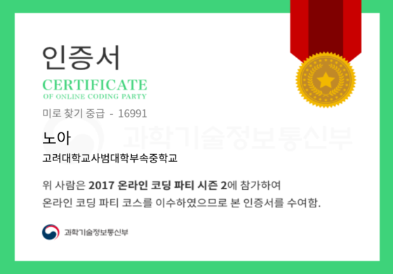 온라인 코딩 파티 참여하고 미션에 성공해 인증서를 받아보세요. 미션을 완료하면서 받은 인증서를 ‘인증서 자랑하기’에 등록해 주세요.