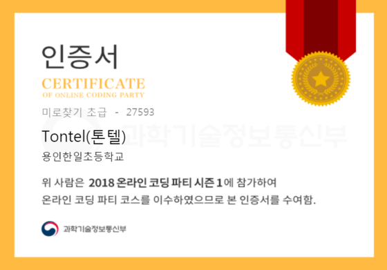 온라인 코딩 파티 참여하고 미션에 성공해 인증서를 받아보세요. 미션을 완료하면서 받은 인증서를 ‘인증서 자랑하기’에 등록해 주세요.