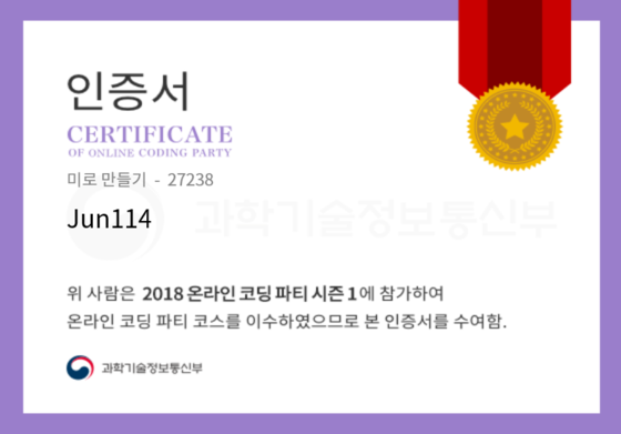 온라인 코딩 파티 참여하고 미션에 성공해 인증서를 받아보세요. 미션을 완료하면서 받은 인증서를 ‘인증서 자랑하기’에 등록해 주세요.