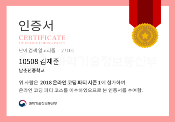 온라인 코딩 파티 참여하고 미션에 성공해 인증서를 받아보세요. 미션을 완료하면서 받은 인증서를 ‘인증서 자랑하기’에 등록해 주세요.