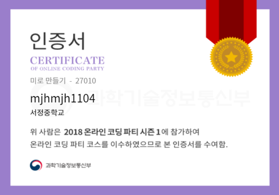 온라인 코딩 파티 참여하고 미션에 성공해 인증서를 받아보세요. 미션을 완료하면서 받은 인증서를 ‘인증서 자랑하기’에 등록해 주세요.