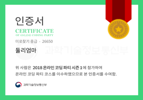 온라인 코딩 파티 참여하고 미션에 성공해 인증서를 받아보세요. 미션을 완료하면서 받은 인증서를 ‘인증서 자랑하기’에 등록해 주세요.