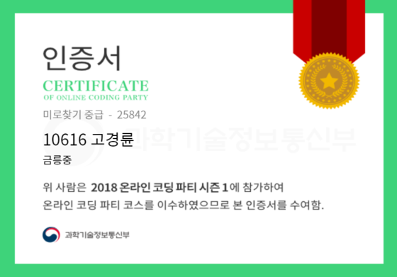 온라인 코딩 파티 참여하고 미션에 성공해 인증서를 받아보세요. 미션을 완료하면서 받은 인증서를 ‘인증서 자랑하기’에 등록해 주세요.