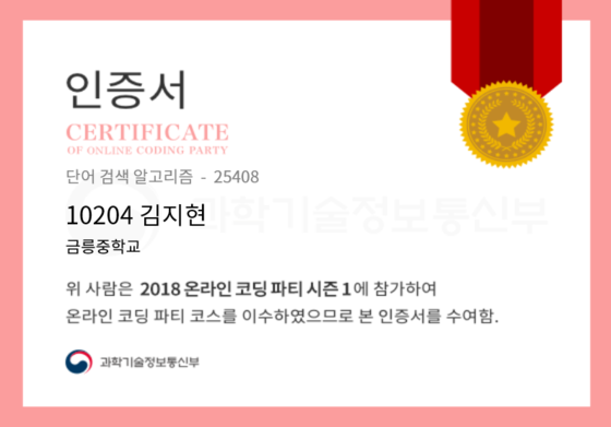 온라인 코딩 파티 참여하고 미션에 성공해 인증서를 받아보세요. 미션을 완료하면서 받은 인증서를 ‘인증서 자랑하기’에 등록해 주세요.